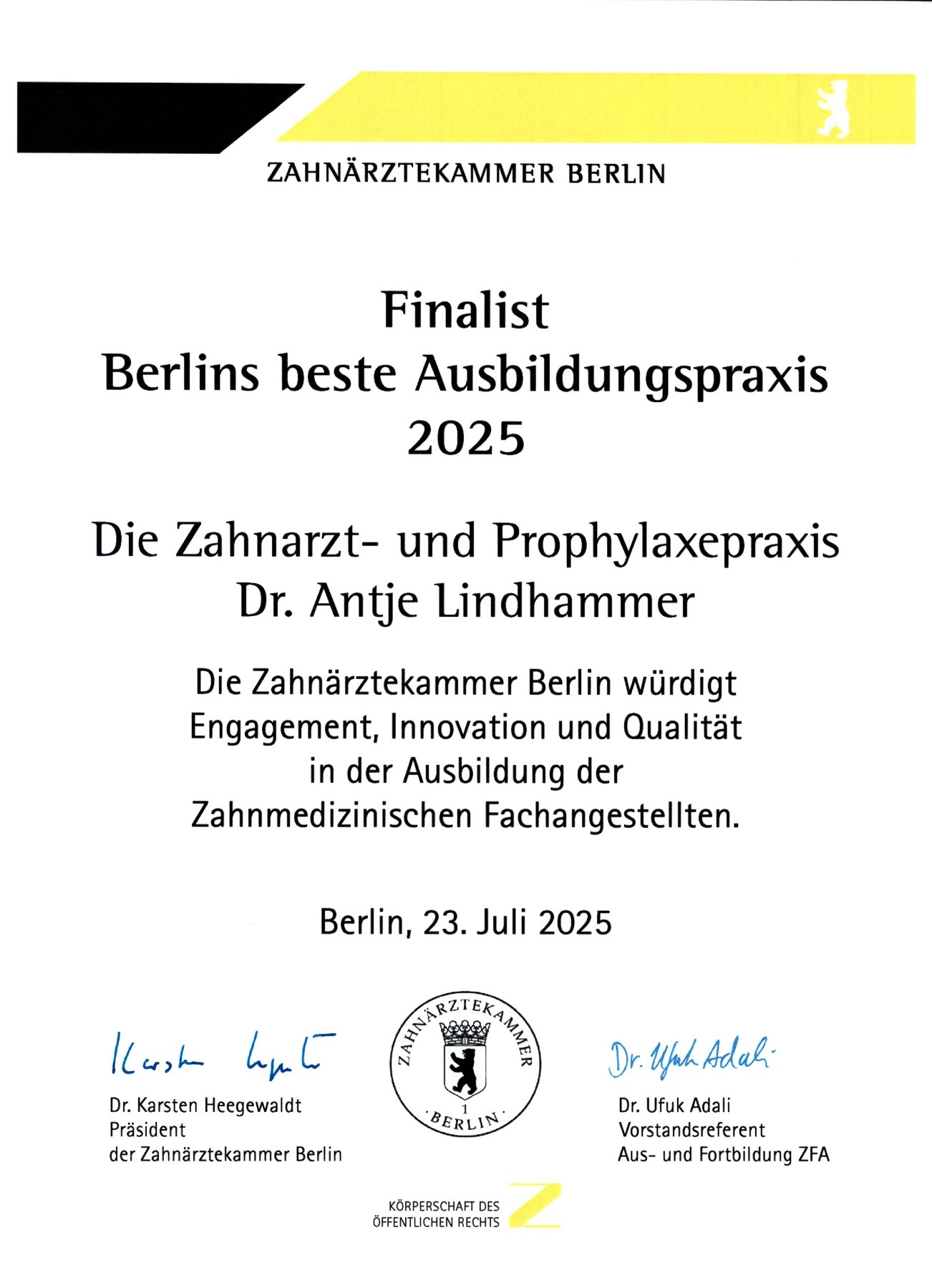 Wir sind unter den Finalisten für den Wettbewerb um die beste Ausbildungspraxis Berlins! Auch wenn wir nicht gewinnen sollten, bleiben wir unglaublich stolz auf Lilli und Aleksa, die diesen Beruf mit Freude erlernen!
